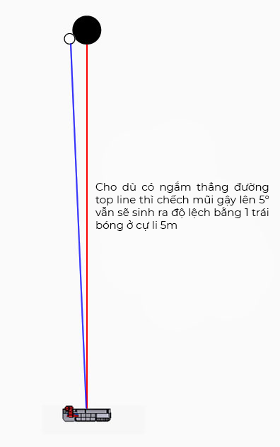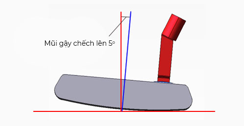 Một cây gậy putter điển hình có góc loft từ 2° đến 5°, vì vậy nếu giữ gậy putter sao cho mũi gậy chếch lên thì mặt gậy sẽ nghiêng về bên trái. Giả sử bạn có một cây gậy putter với góc loft là 5°, và chếch mũi gậy lên 5°, kể cả bạn giữ sao cho đường trên (top line) thẳng, thì mặt gậy sẽ nghiêng sang trái với góc 0.4°. Từ đó, ở cự ly 1m cú đánh sẽ tạo ra độ lệch khoảng 8.64mm, và nếu cự ly 5m thì sẽ tạo ra độ lệch tương đương 1 trái bóng (khoảng 43mm).