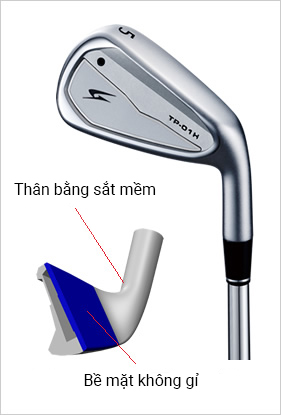 Đạt được cả cự ly bay và cảm giác đánh tốt trên một cây gậy Iron là một nhiệm vụ khó khăn. Nếu làm mỏng mặt gậy để đạt được cự ly bay xa hơn thì cảm giác cú đánh sẽ bị cứng, còn ưu tiên làm cú đánh mềm mại hơn thì mặt lại bị dày. Vì vậy, chúng tôi đã làm đầy bên trong đầu gậy từ gậy #5 đến gậy PW bằng bọt micro urethane. Nhờ vậy mặt gậy mỏng hơn và duy trì khả năng tạo lực đẩy lớn, trong khi đó vẫn mang lại cảm giác mềm mại cho cú đánh.